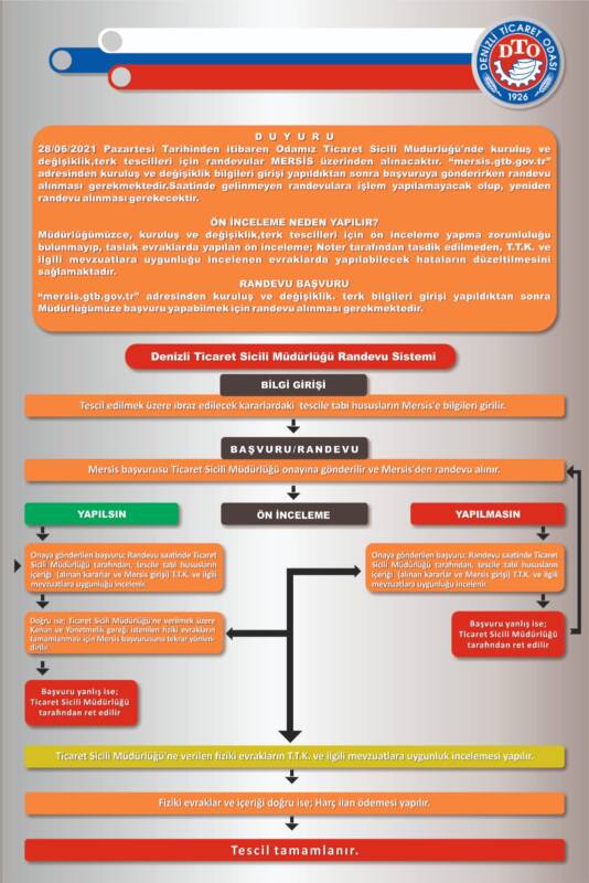 28/06/2021 tarihinden itibaren Odamız Ticaret Sicili Müdürlüğü’nde kuruluş, değişiklik ve terk tescilleri için randevular MERSİS üzerinden alınacaktır.