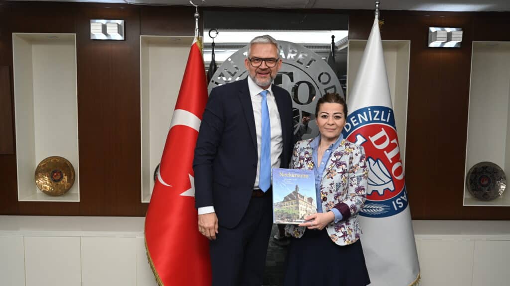 DTO hizmet binasındaki sektörel bilgilendirme ve tanışma toplantısına katılan heyette Almanya Neckarsulm Belediye Başkanı Steffen Hertwig’in önderliğinde, Neckarsulm Belediyesi Kültür ve Spor Dairesi Başkanı Hansjörg Kiefer, Belediye Meclis Üyesi ve CDU Parlamento Grubu Başkanı Eberhard Jochim, CDU Meclis Üyesi ⁠Jasmin Zoll, SPD Meclis Üyesi Tanja Wache, BIG Meclis Üyesi Hamit Kaya, Neckarsulm Uluslararası Komite Üyesi Ahmet Dülek, Avrupa Denizliler Derneği Başkanı ⁠Ali İnceören, Türkspor Neckarsulm Kulübü Başkanı Cumali Ardın ile onlara eşlik eden Türk iş insanı Almanya Kilim Gazetesi Genel Yayın Yönetmeni Ali Batmaz yer aldı.