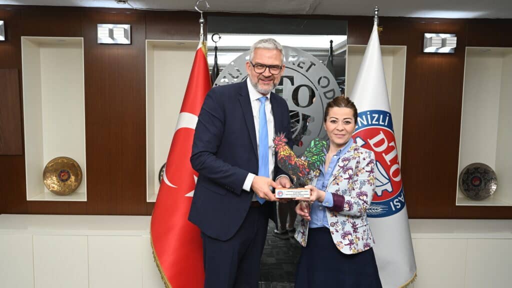 Denizli Ticaret Odası (DTO) şehrin, sektörlerinin ve üyelerinin ihracatını artırmak ve KOBİ’leri ihracata kazandırıp daha da kalkınmalarına yönelik yeni pazar arayışı çalışmalarını, son sürat ve kesintisiz sürdürüyor. DTO Başkanı Uğur Erdoğan’ın, Özbekistan Ankara Büyükelçisi ile Denizli’ye gelen Özbek iş insanları ile yetkililerini ağırlamasının hemen ardından bu kez de Alman iş insanları DTO’yu ziyaret etti; farklı sektörlerdeki oda üyeleri ile bir araya gelerek iş birliği alanlarını ve ticari bağları geliştirmenin yollarını aradı. Toplantıda, Alman heyetin, Türk iş insanlarının Almanya vizelerinde yaşadığı sıkıntının bir an önce aşılması gerektiğine dair dikkati çekildi.