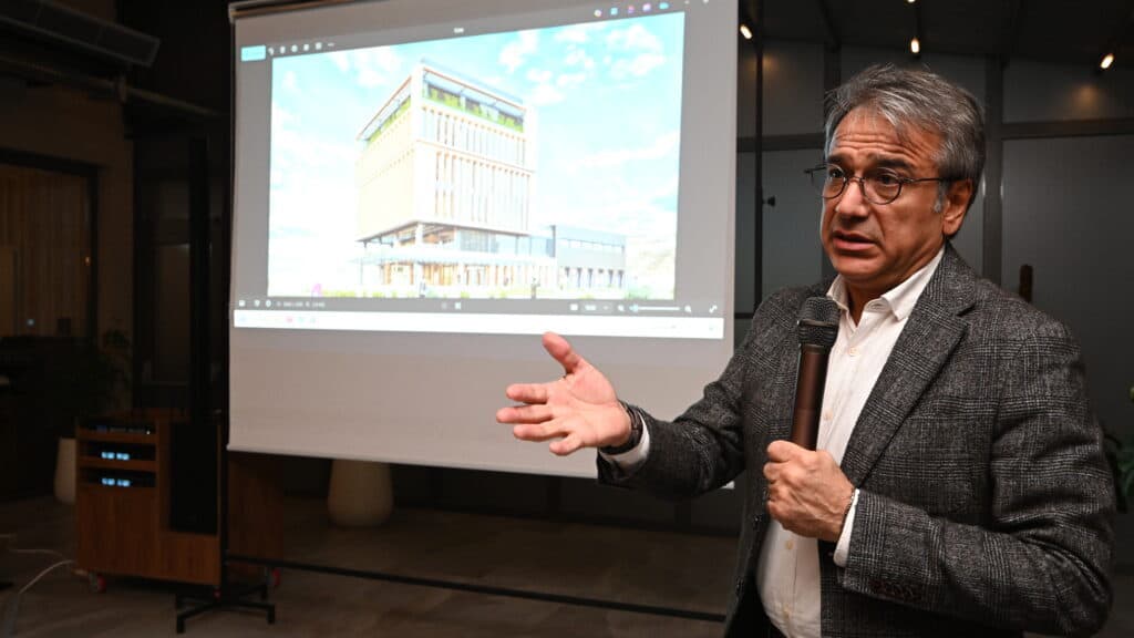 Başkan Erdoğan’ın konuşmasının ardından, DTO Genel Sekreter Yardımcısı Tekstil Mühendisi Dr. Akay Gündoğan projelerinin içeriği hakkında teknik ekipleri tarafından hazırlanan bir sunumla, YİK üyelerini ayrıntılı bilgilendirdi. Ondan sonra da Mimar İbrahim Şenel DTO’nun yeni bina yapma çalışmalarındaki son durum ve projenin içeriği hakkında detaylı bilgi verdi.